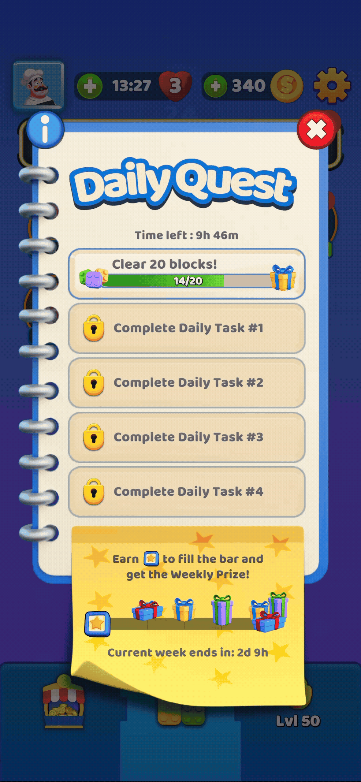 Daily Quests refresh every 24 hours — so keep playing every day to earn amazing rewards!