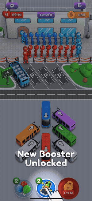 🎈 Balloon: Lifts a bus and instantly sends it to the correct parking area. Perfect for unclogging tricky spots!