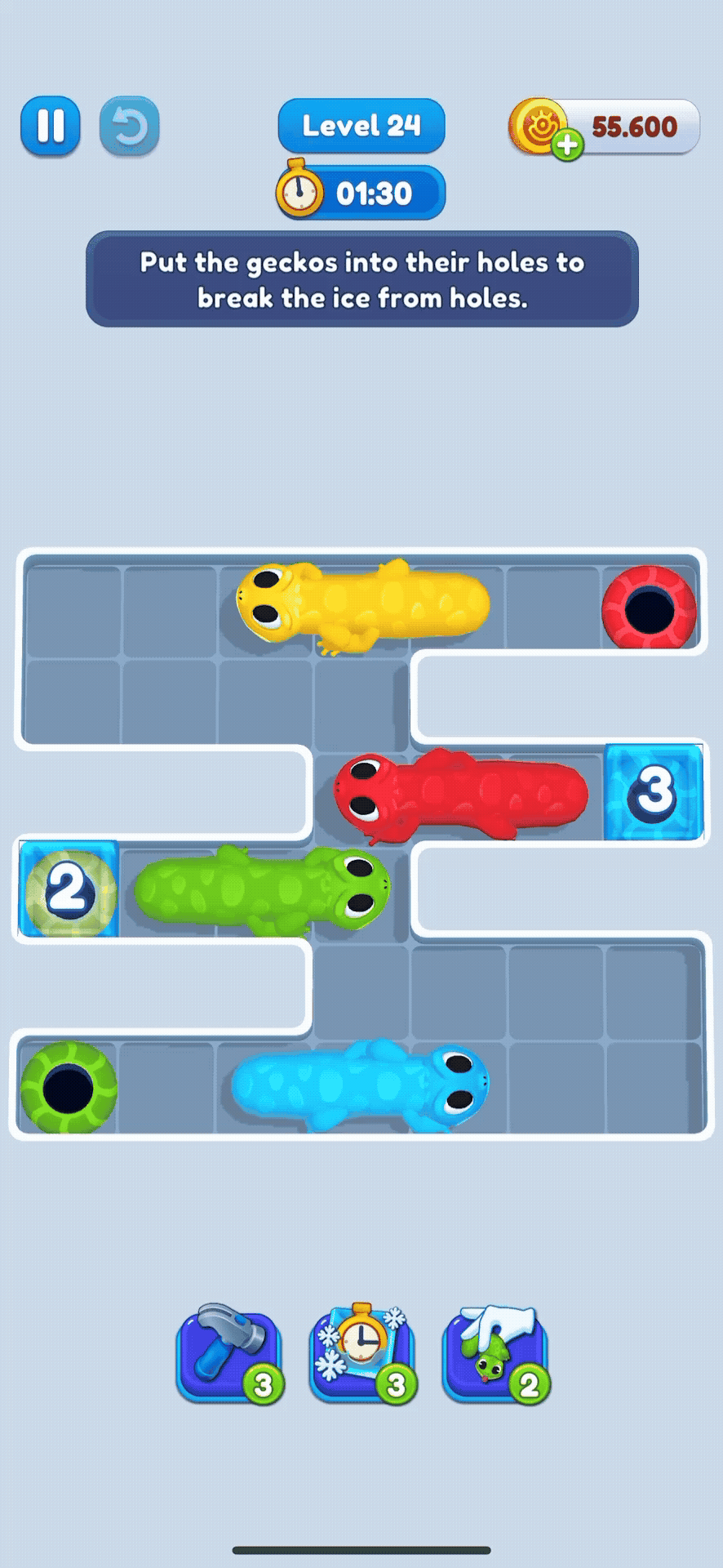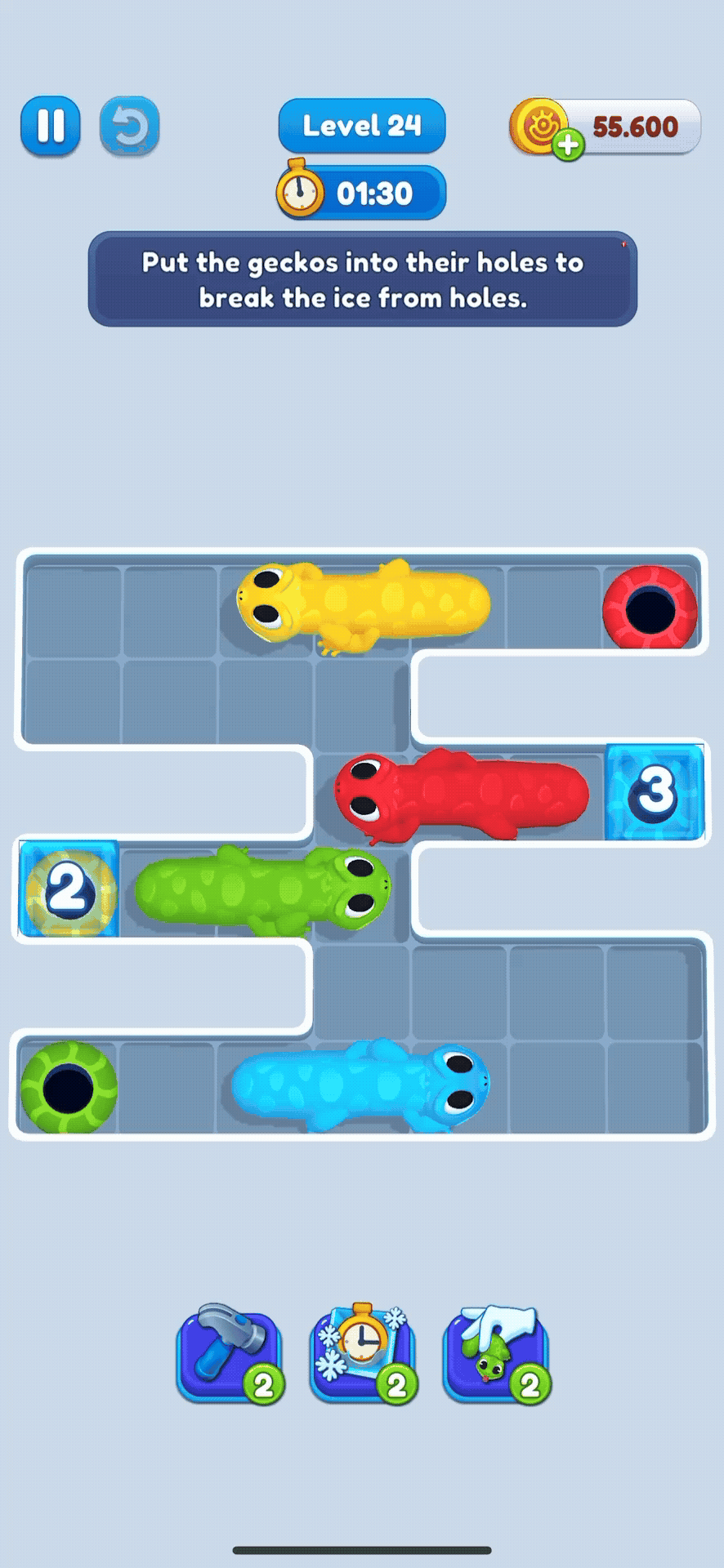 Boosters are special tools in Gecko Out that give you an advantage when levels get tough. There are 3 boosters in the game, each with a unique effect: