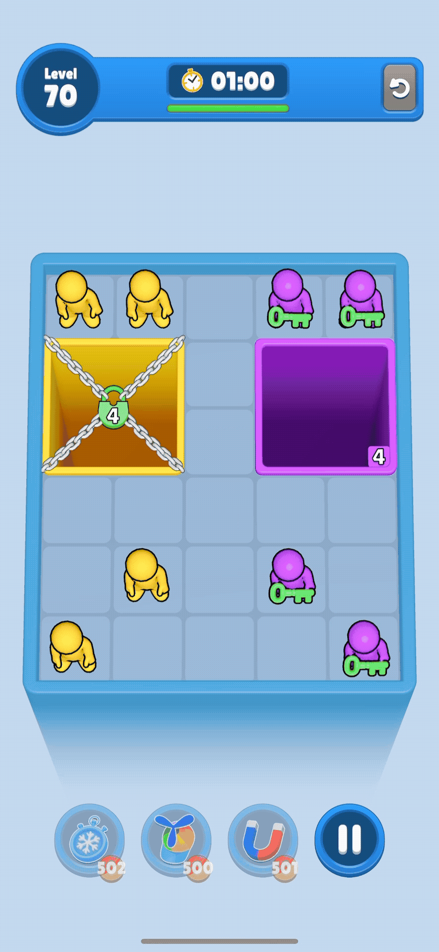 π Lock & Key β Chained holes canβt move until unlocked. Collect keys to unchain.